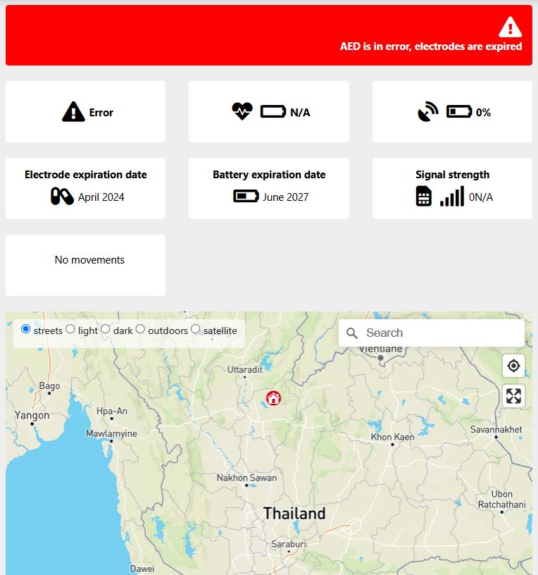 Next to the aforementioned described states, there are grey devices in the platform. Grey indicates AEDs that are verified, so they do exist, but are not yet placed at their intended location. AEDs indicated in grey might still be in transit or on stock in a warehouse. You might ask how AED data of grey devices gets into the platform in the first place? That leaves room for another blog post, let’s just say we always like to validate and we only accept AEDs into the platform that we know for sure have a valid serial number and origin.